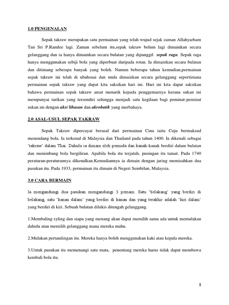 Olahraga ini tercipta sekitar 634-713 Masehi. Up to 24 cash back Sejarah Permainan Sepak Takraw berasal dari dua kata iaitu SEPAK Malaysia yang berarti menendang dan TAKRAW Thai yang bererti bola ayaman pemilihan nama untuk permainan ini merupakan kesepakatan dari dua negara pelopor iaitu Malaysia dan Thailand. Sepak Takraw adalah suatu permainan yang menggunakan bola yang terbuat dari rotan takraw dimainkan di atas lapangan yang datar berukuran panjang 1340 m dan lebar 610 m.